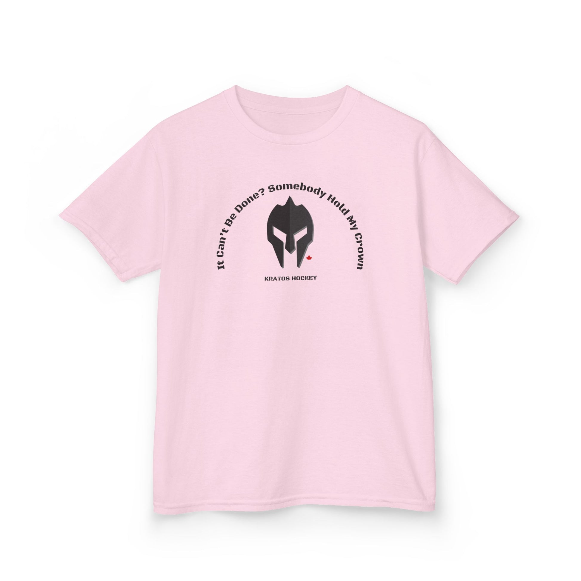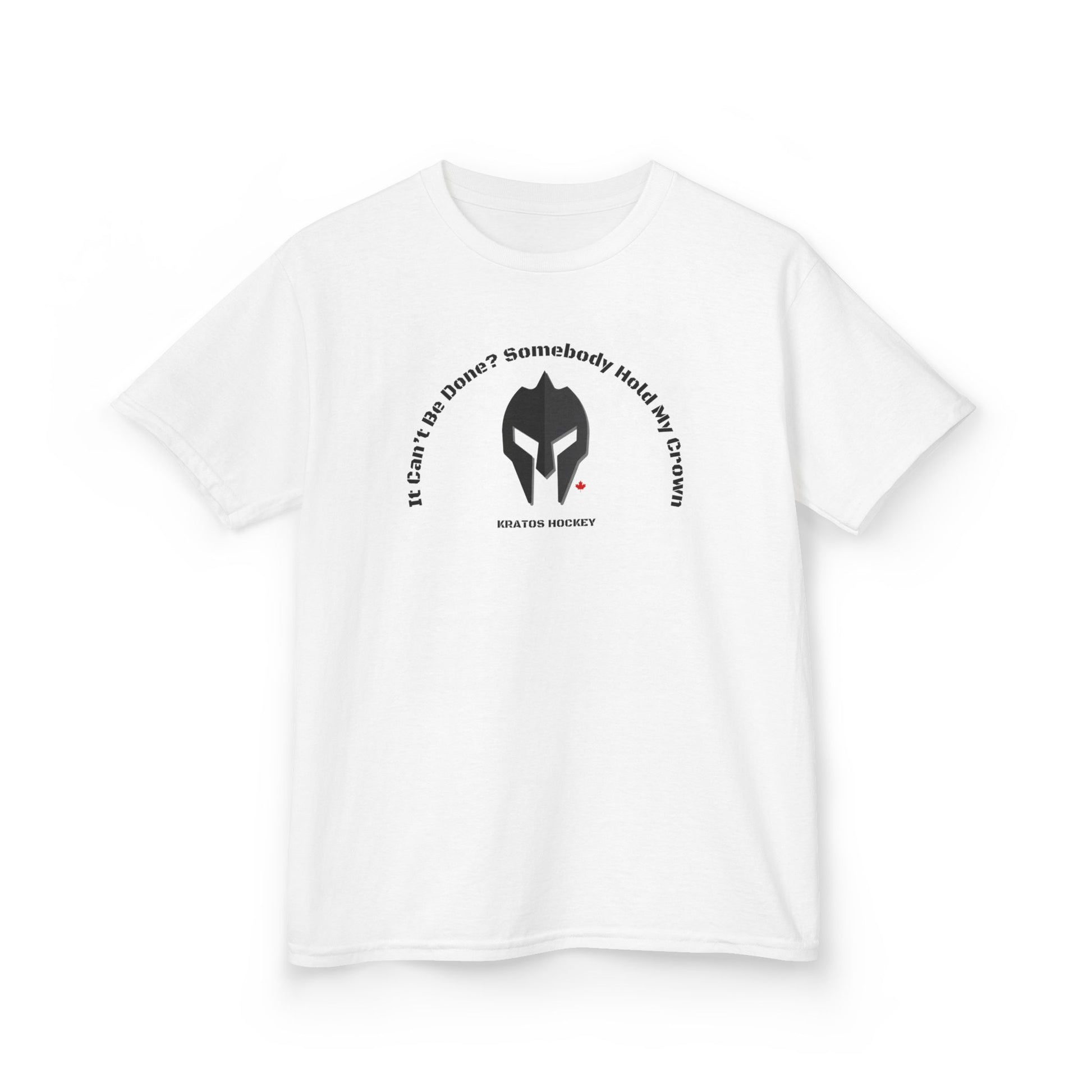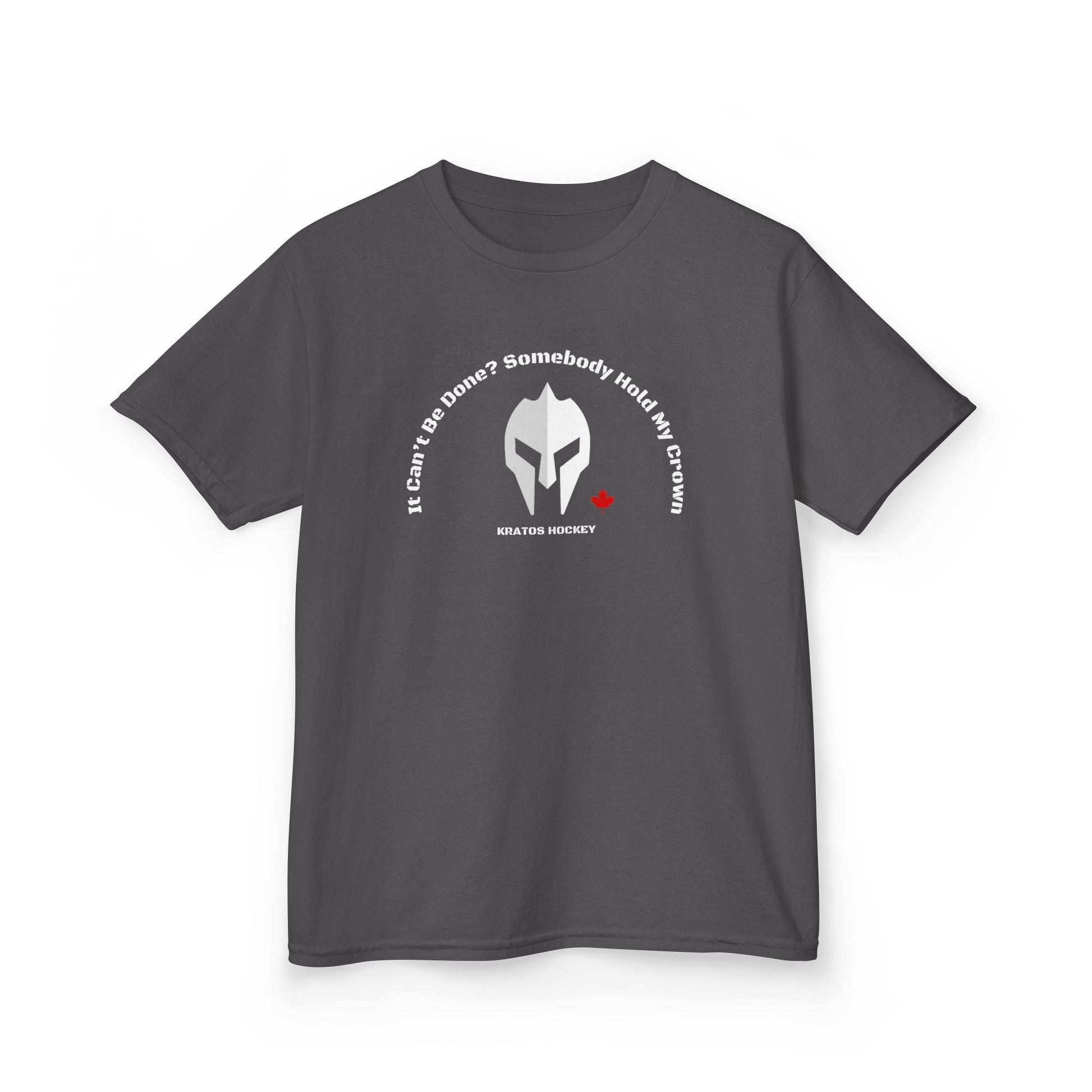Celebrate your child's individuality with the Kratos Hockey™ Heavy Cotton™ Tee - 'It Can't Be Done? Somebody Hold My Crown', where style meets comfort in a delightful package!