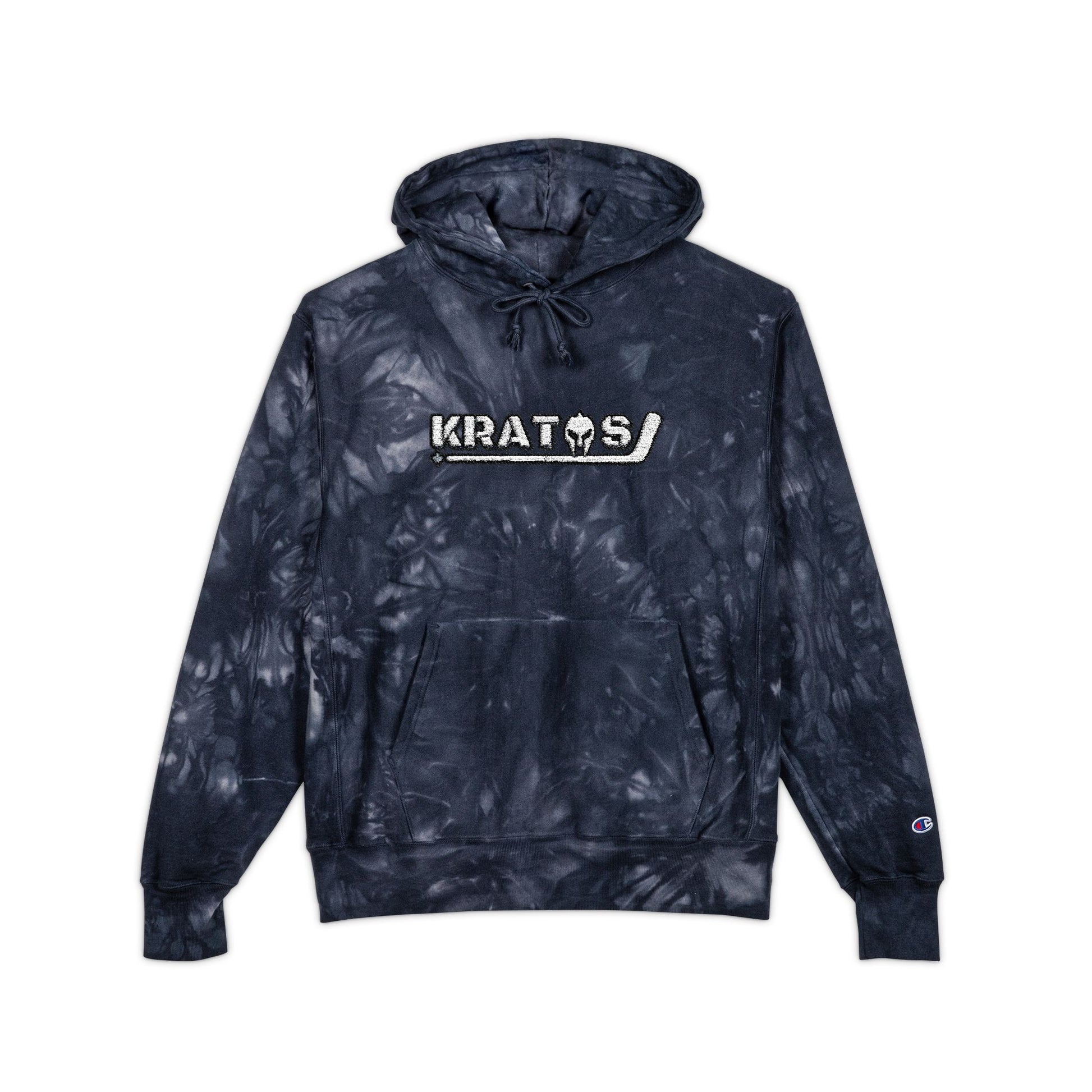 Kratos Hockey™ X Champion Embroidered Tie-Dye Hoodie — a statement piece that combines comfort, character, and quality in one wardrobe essential.